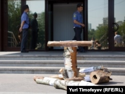 После пресс-конференции участники акции положили дрова у входа в здание Правительства РФ
