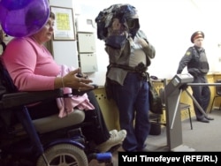 Уполномоченным по правам человека в России Владимир Лукин с трудом втолкнул участника акции по пандусу у Российской государственной библиотеки