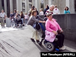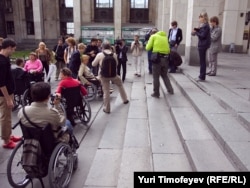Татьяна Лазерева пытаеться попасть в Пушкинский музей на ивалидной коляске
