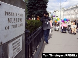 После попытки попасть в Российскую государственную библиотеку участники акции отправились в Государственный музей им. Пушкина