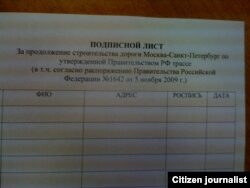 Потом мы получили абсолютно достоверную информацию, что старших по домам, в частности, в микрорайоне Левобережный города Химки, вызвали в местную территориальную администрацию (в каждом районе есть своя администрация, помимо общехимкинской) и дали текст того же обращения плюс бланки подписей – за сохранение существующего маршрута трассы через лес. Старших по домам попросили собрать подписи среди жителей микрорайона под этим обращением.