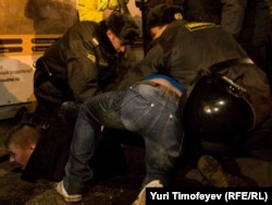 Остальных (примерно 100 человек) милиция и солдаты внутренних войск настойчиво пытались оттеснить от станции метро и концертного зала и через живой коридор из сотрудников правоохранительных органов направить к гостинице "Пекин", где проходила согласованная акция. Молодые люди сопротивлялись, не желая проходить через рамки металлоискателей, и скандировали: "В загон не пойдем!"