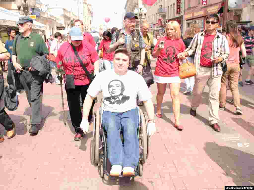 Несколько десятков человек с воздушными шарами и в майках с портретом Михаила Ходорковского колонной пошли по Арбату 26 июня, раздавая подарки прохожим. Таким образом они поздравили Ходорковского с днем рождения. Сотрудники полиции сопровождают колонну, некоторые участники акции были задержаны.