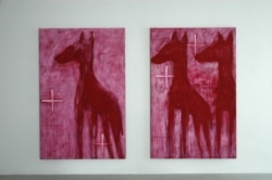 Йозеф Жачек: Меня интересует, что происходит во всем мире, не только в России. Конечно, я обращаюсь и к русским зрителям тоже. Это большая галерея, вот вы пришли и увидели эти картины. Цикл, который здесь выставлен, называется ''Шепоты''. Я чувствую, что в обществе существует шум, ропот, что-то происходит, не все в порядке. Здесь четыре картины – и каждая из них зеркально отображает ту, что висит на соседней стене. Это зеркало, которое отражает наши неблаговидные влечения, стремление к саморазрушению, вещи, типичные для современного мира.