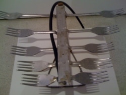 Владимир Архипов: Первым объектом был крючок. Такая была история. У моего друга была дача под Москвой, они зимой там не жили, и на зиму, чтобы не оставлять вещи, мы поехали эти вещи забрать. Это было в 1994 году, и в это время я переживал такой творческий кризис – около года не знал, что делать. То, что я делал до этого времени, мне казалось уже, что не надо продолжать эту линию. Я делал такие объекты из бытовых предметов. Объекты для эстетического потребления, но из утилитарных бытовых предметов – из кастрюль, банок, сковородок, спичек, макарон.