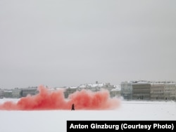 Дмитрий Волчек: И еще один важный элемент — красный дым, который возникает, например, на фоне Зимнего дворца.