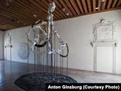 Дмитрий Волчек: В июне мы уже гуляли по Джардини, Арсеналу и венецианским дворцам, где проходит 54-ая Биеннале. Сегодня мы вернемся в Венецию, в палаццо Боллани, чтобы поговорить с автором одного из самых интересных, на мой взгляд, независимых проектов: ''В спину северного ветра''. Антон Гинзбург, бывший петербуржец, а ныне житель Нью-Йорка, представил фотографии, рисунки, скульптуры и фильм о поисках Гипербореи. Художник в золотых эскимосских очках искал таинственную страну в Орегоне, Петербурге и на Белом море.