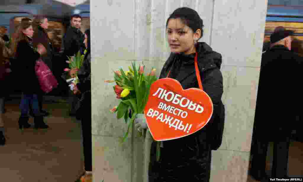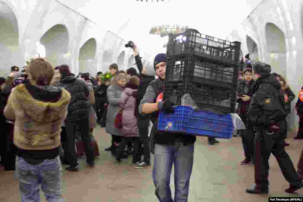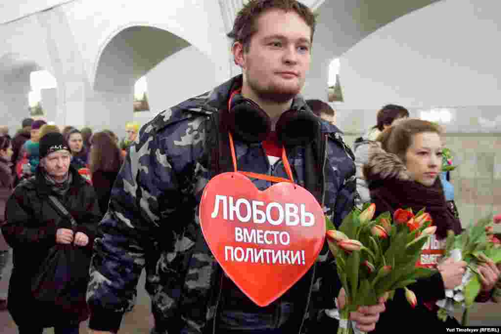 "Сеть сторонников Владимира Путина" провела в московском метро акцию "Wесна - встреча политической весны".