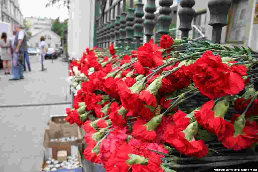 Russia--Day of mourning in front of the Krasnodar region representation in Moscow, 9Jul2012