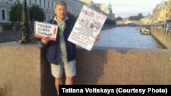 В Санкт-Петербурге на митинг, посвященный 25-летию победы над ГКЧП, пришли около 100 человек. Первые активисты явились к Мариинскому дворцу за несколько часов до начала акции. Их опередили члены Национально-освободительного движения (НОД), которые пытались помешать акции. Они становились в пикеты рядом с участниками одиночных пикетов, чтобы создать повод для их задержания. По словам организаторов митинга, источники в полиции предупредили их, что людей с плакатами будут задерживать.