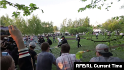 После этого к месту проведения митинга пришла группа людей в спортивной одежде, которые с криками "За храм!" набросились на участников акции, начались стычки. Полиция применила слезоточивый газ, со ссылкой на очевидцев сообщает "МБХ медиа". По другим сообщениям, газ из баллончиков распыляли сторонники сооружения храма.