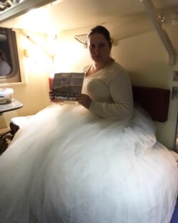 Оказывается, ростовский Дед Мороз теперь тоже пассажир "Таврии" – и, кажется, безбилетный, но никто его не гонит. "Дед" снял бороду и парик и оказался веселым сухим мужиком: он распевает бардовские песни, и в его импровизированном Грушинском фестивале участвует половина вагона. В последнем кубрике сидит дама в огромной, занимающей всю полку пышной белой юбке. "Вас можно сфотографировать?" – "Конечно, только дайте я табличку возьму". Она разворачивает буклет – "В добрый путь" написано на нем. "Вы – невеста?" – "Да нет, просто Новый год!"