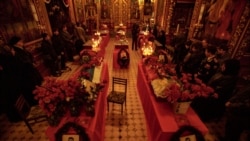 Максим Мармур: Это блок, на котором мы можем видеть прощание с погибшими десантниками шестой роты Псковской воздушно-десантной дивизии. Эта рота вступила в бой с превосходящими силами противника, и на высоте остались практически все за исключением, по-моему, четырех человек. Фотография была сделана 14 марта, в храме, в городе Псков. Тяжелая была очень съемка, всегда не люблю ее вспоминать. Это было невероятно тяжело, сердце рвало, душа разрывалась.