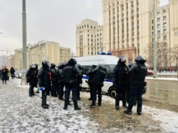 В сквере у метро "Красные ворота" полиция также задерживает людей, которые, по словам корреспондента Радио Свобода, мирно стояли