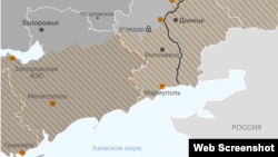 Вот, например, РБК публикует карту захваченных территорий на 7 июля. Они отмечены оранжевым.