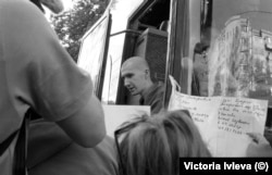 Из окна автобуса они видят радостную толпу встречающих: это все те, для кого война стала ощутимой на личном, частном уровне отдельной семьи – их родные мужчины ушли защищать Украину и пропали без вести или оказались в российском плену. Одни разворачивают огромные, чуть не в человеческий рост баннеры с именами и фотографиями сыновей, братьев, мужей, друзей, другие держат самодельные плакаты, а кто-то и просто тетрадные листы с фамилиями. Многие знакомы: принимают участие в постоянных акциях поддержки военнопленных - так они поддерживают и друг друга.