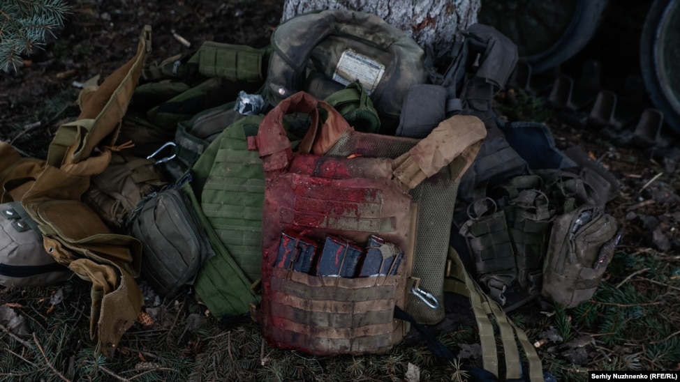 Окровавленное снаряжение украинского солдата. Донецкая область, 23 января 2023 года.