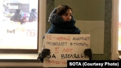 В Санкт-Петербурге активисты провели одиночные пикеты в поддержку осужденного подростка из Канска Никиты Уварова и находящейся под арестом Заремы Мусаевой. Об этом сообщает Север.Реалии.