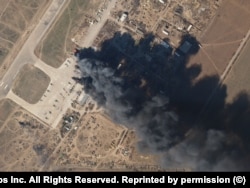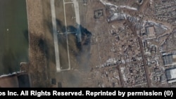 На этом спутниковом снимке сервиса Planet.com, сделанном 15 марта, – ставшая символом бесплодного упорства российской армии Чернобаевка в Херсонской области, где оккупировавшая город российская армия разместила свою авиацию на военном аэродроме. Аэродром в Чернобаевке неоднократно обстреливался ВСУ, пока россияне наконец не оставили его, как затем и всю правобережную часть Херсонской области, освобожденную Украиной в начале ноября.